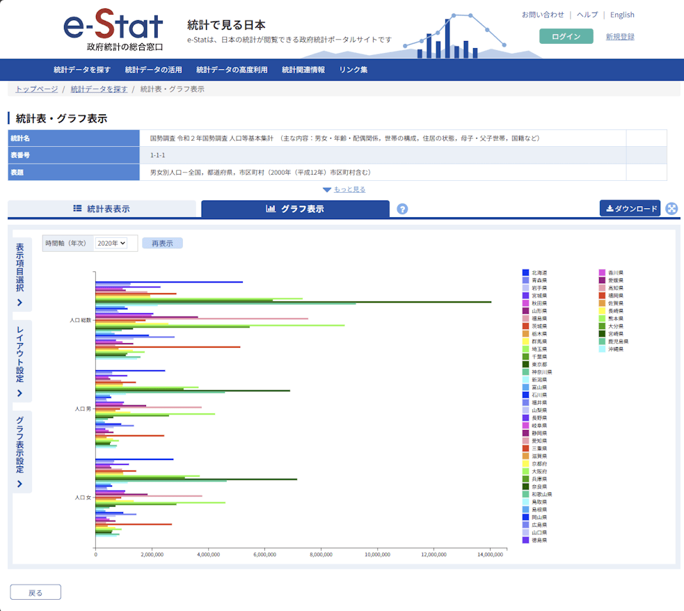 データベース形式 | ウェブ上で抽出・加工・グラフ化が可能。必要な項目だけをCSV/XLSX形式でダウンロード可能。API形式でも利用可能(ユーザー登録・アプリケーションIDが必要) |