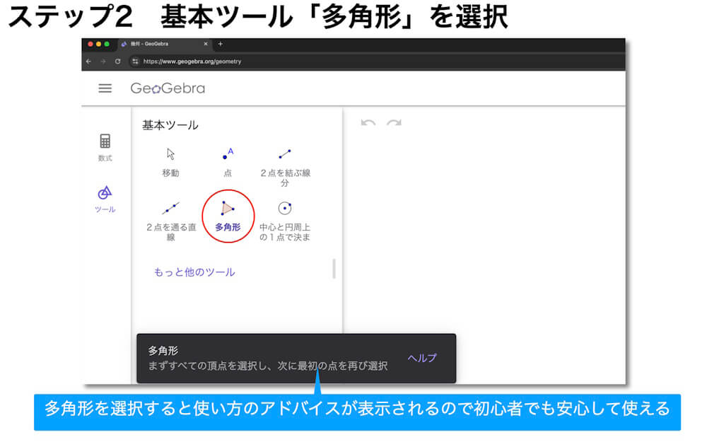 今回のコラムでは、数学ツール「GeoGebra(ジオゲブラ)」を使った作図を詳しくご紹介しました。