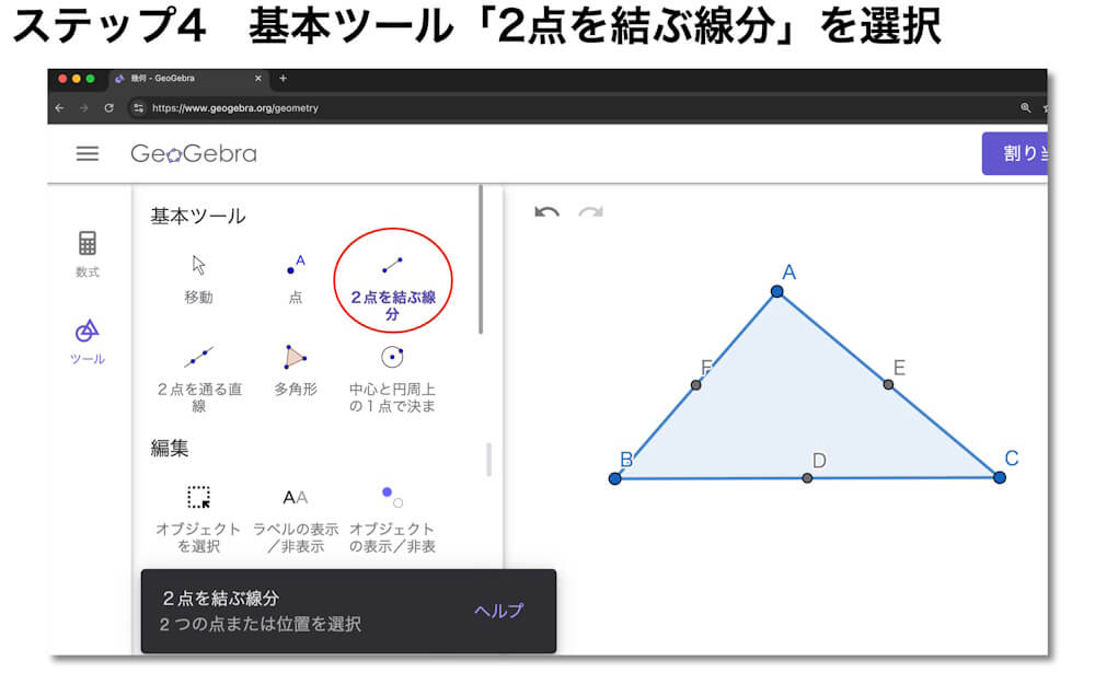 基本ツールにある「2点を結ぶ線分」を選択します。
