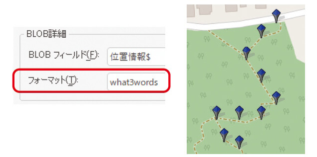 応用編として、データベースに保存したwhat3wordsの位置情報をBLOB文字列として読み込み、地図上に位置をプロットできます(図3、図4)。